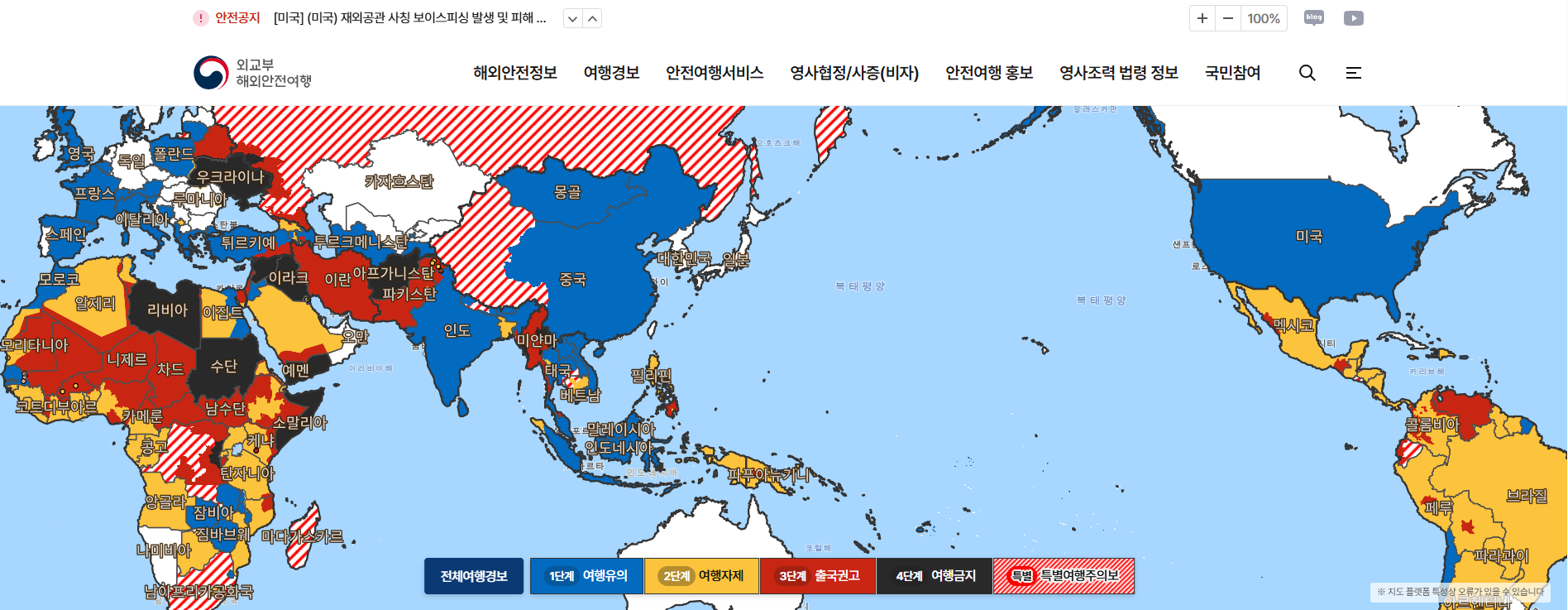- 해외안전여행 사이트 또는 각 나라별 여행 또는 이민자 모임 카페에서 확인 가능합니다.