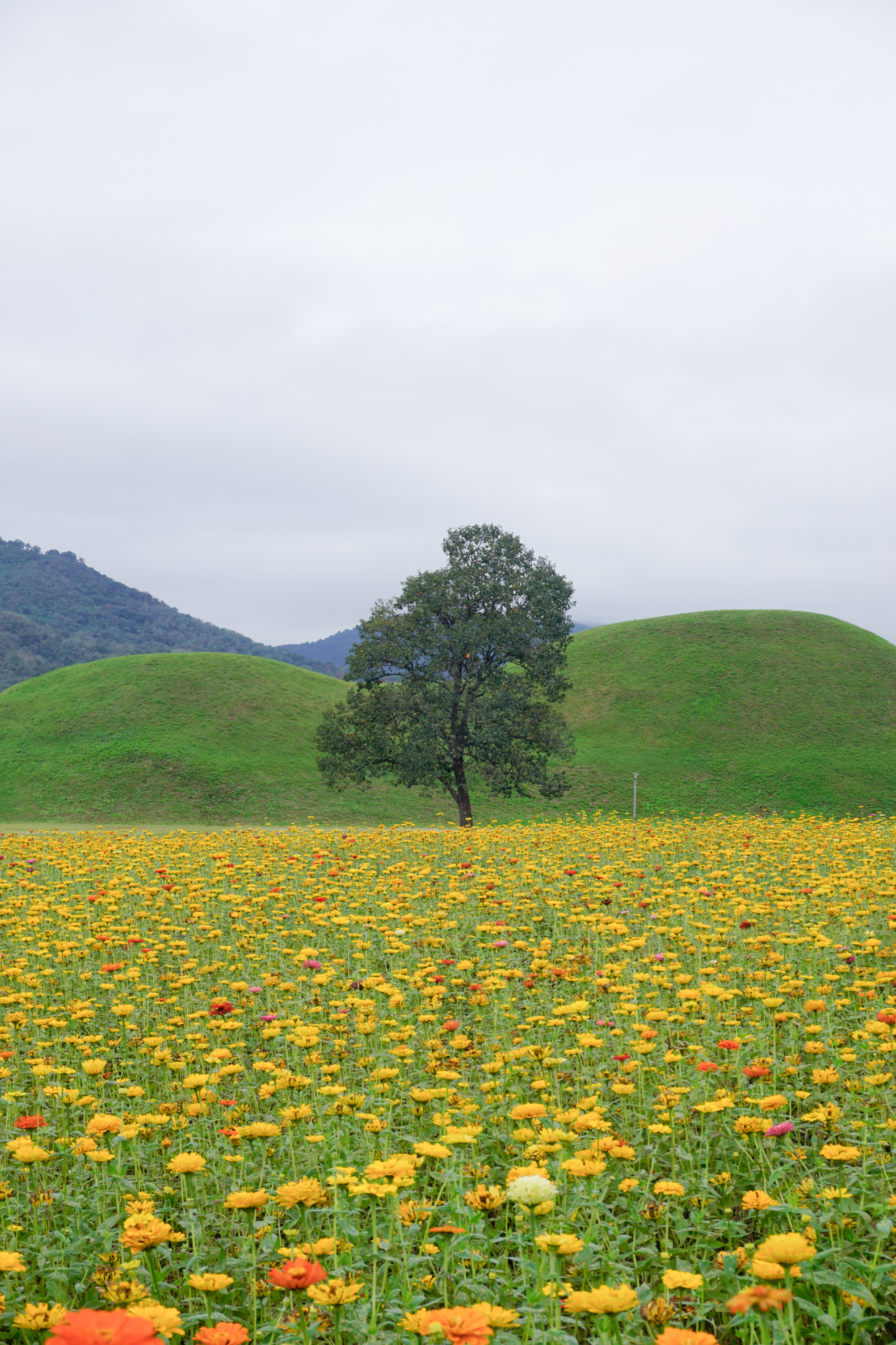 ν©λ¦¬λ¨κΈΈ μμ μλ κ½λ°μΌλ‘ λ₯κ³Ό κ³³κ³³μ μλ λ무λ€μ λ